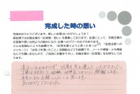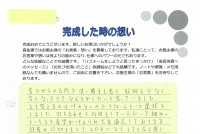 大工ご担当者様:せまくて暑い中、手早く、またていねいにお仕事をしていただき、とても感謝しております。家族みんなで、仕事のスピードと仕上がりのよさにすごく感動しています。途中で床を追加注文しお手数おかけしました。あのスペースのおかげで、部屋がとても片づき、大変助かっています。