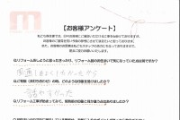 完成した時、これが本当に「私たちの家なの?!」となるぐらい驚きました。以前の空間と全く違う喜びでいっぱいになりました。床が歩くたびに、音が鳴っていたのですがそれが嘘のようにツルツルになっていてそれが一番感動しました。家の中が一周り大きくなったようにも見えます。色々と要望に応えていただいてありがとうございました。