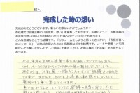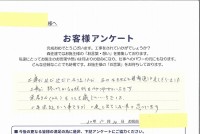 以前、居間の床板がだめになった時、貴社に工事をしていただいた時、親切に心くばりをして工事していただいた事。