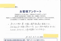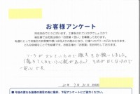 担当の伊藤さんには、下見から見積り、施工完了チェックまで一つ一つ丁寧に対応して頂き、資料や書類もキッチリ出して下さることで、安心してお任せすることができました。