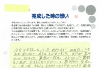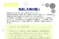 そこで私は現在住んでいる我々の小屋をリフォームしてはと思い付き、迷う事なく森住建に御願いした。今度は約1ヶ月程日数が必要であった。然し乍ら完成した我が家を見て呆然とした。此れが我が家かと。旅行先一流のホテル様な感じだと。
