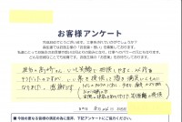 今回トイレを現在の和式から洋式に替えるべく、実績が有り信頼出来る、森住建さんのショールームを冷かし半分に見学に行きました。そこで営業の川瀬さんにお会いして、優しく親切な語り口に安心して見積りを依頼しました。最初見積りは少し高いと思いましたが、思い切って発注しました。5日程で工事も完了し、なによりも職人さん達の明るい性格と、無駄の無い動きに感心しました。おかげできれいに出来上がり、今ではトイレに入るのが楽しみです。ありがとうございました。大切に使用させて頂きます。
