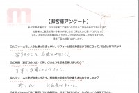 簡単なリフォームでしたが、大変親切に相談にのって下さり、変更などにも丁寧に対応していただきました。