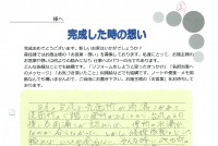 細かいこちらの要望にも、ひとつひとつ親身になって考え対処していただき、年内に完成することができとても感謝しております。