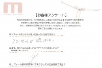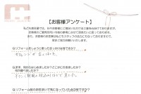 最初はガスレンジと換気扇が古くなっていて取り替えたいと思い、何気なく飛び込んだのがBIGの中にある森住建さんでした。展示コーナーを見ているうちに声をかけて頂いたのが平田さんでした。気軽に声をかけて頂き、いっそキッチン丸ごと交換しようという思いにかられ、一緒にショールームまで連れて行って頂き、現物を見る事ができ、本当によかったです。疲れましたが楽しい一日でした。私の希望をまとめて頂き親身になって頂き、女性の眼で色々なアドバイスをして下さり、迷う事が多い私に決める事ができました。一つ一つ手順をふんでわかりやすくまとめて下さるなど、関心するばかりです。若いスタッフさんばかりでアッと言う間に完成した様に思います。