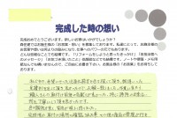 引き渡し後、水まわりのトラブルが発生した時も、すぐに駆けつけて下さいましたし、誠実に対応して下さいました。今のところ大丈夫です。また何かありましたら、お願いします。