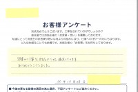 この度は小塚さんには大変お世話になりました。風呂のサッシもとてもきれいになり、パッキンも完全に直っており想像以上でした。工事を終えるまで何度も足を運んでいただき、こちらの心配事には直に真剣に向き合って下さって感謝しています。笑顔も印象的でした。有難うございました。