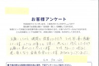 家作り(リノベーション)は、「こんな風になったらいいな・・・。」から始まり、イメージをふくらませ図面になり着工…完成となりますが、その間本当に多くの方に関わっていただくことを知りました。営業の髙﨑さん、出会ってから3年近く辛抱強く(笑)相談にのっていただきました。着工してからは、たくさんの職人さんたちがこだわりのプロ意識と確かな技術で作り上げる様子を見て感動の毎日でした。そしてその職人さんたちをまとめつつ私たちの要望をいつでも気持ち良く「了解です!」と言ってかなえてくださった古山監督さん。真夏の暑い暑い中での工事でしたが多くの方々の「良いものを作ろう!」という気持ちがひとつになって完成した我家。「快適です。」「森住建さんにお願いして良かった。」本当にありがとうございました。