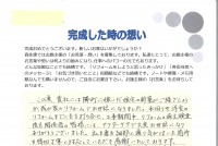 今回初めて森住建さんでお世話になりました。購買商品は洗面棚とトイレで工事は1日で終わりくわしい事は書けませんが、工事に関しては細かい所も手を抜かずに出来ていると思う。大変よいと思う。営業も今回杉山君若い人で一生懸命にガンバッていると思う。一生懸命が相手に伝わらないとお客は取れません。若いので知識が不安でも今回は一生懸命さが伝わり無理も言いましたが無事に終わりました。ありがとうございました。