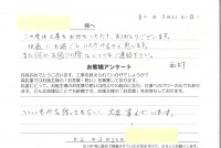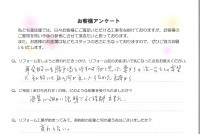 新型コロナの影響が出始めた頃でしたが、成瀬さんから色々とアドバイスをして貰えたので大変助かりました。何かと注文が多かったと思いますが、いつも成瀬さんは私達の意見を全て聞いて下さって、家族全員が納得できる答えを出して下さいました。当日の職人さん達も優しくて丁寧な方ばかりでした。