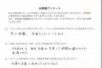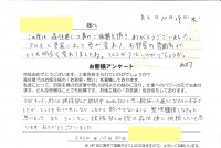 期待通り前回以上に担当者を始め、其々の工事に携わる方々には細かい心遣いと礼儀正しく工事を進め上々の出来で完成させて頂き満足し感謝しております。ありがとうございました。次回もよろしくお願いします。