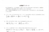 対応していただいた担当者又、職人様の姿勢も感じ良く大変満足しました。工期が少し遅れた事と予算が少しオーバーした感じがしましたが大変満足しています。不満はまったくありません。
