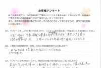 工事期間中は森住建(株)さんも業者さんも、毎日の仕事始めと仕事終わりに挨拶され、工事状況も報告していただきましたので仕様については全く心配はありませんでした。やはり森住建(株)さんにお願いしてよかったと家族で話をしていたところです。工事は当初予定の6月初旬に仕様どおり完了しました。