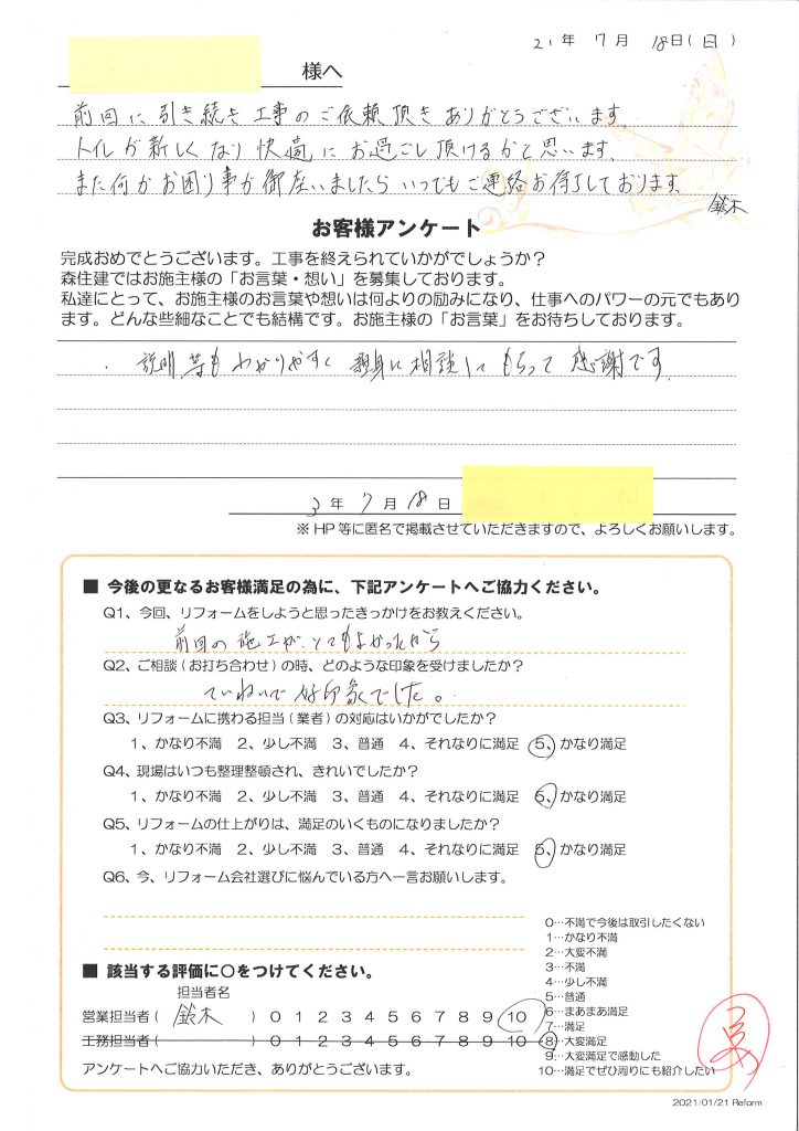 説明等もわかりやすく親身に相談してもらって感謝です。