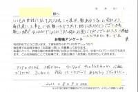 今回、森住建さんの評判を主人が聞いてきて、予約なしで会社に訪問。そのときの杉山さんの対応が心地よいもので、何十年も前に対応して下さった奥様のことを思い出しました。下見、設計の提案、見積もりとだんだんと工事が具体的になり、「リフォーム」と「リノベーション」の違いも教えていただき、工事後の生活が楽しみで仕方ありませんでした。今、実際に生活してみると、私たちが望んでいたものどうりです。本当にありがとうございました。