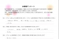 一部屋の床の張替だけの予定でしたが、ていねいに説明して頂き他の提案もしてもらって、気になっていた天井のクロスや、ドアの修理もできました。ちょっとした悩みもしっかり聞いてアドバイスをしてもらえた事がとても好感がもてて、安心してお願いできました。