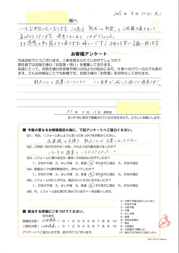 乾太くんを設置したことにより、1つ家事が減った感じで最高です!