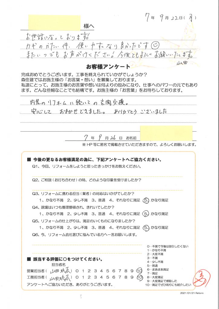 営業の松尾様の熱意と意気込みで森住建に決めました。