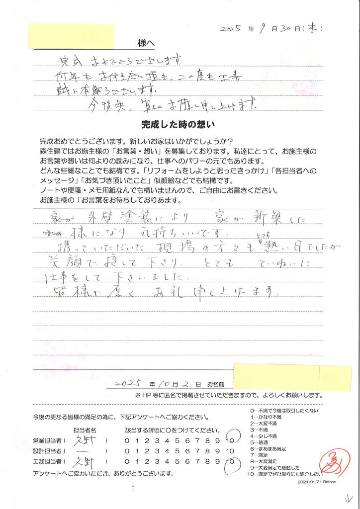 携わっていただいた現場の方々も、とても暑い日でしたが、笑顔で接して下さり、とても、ていねいに仕事をして下さいました。
