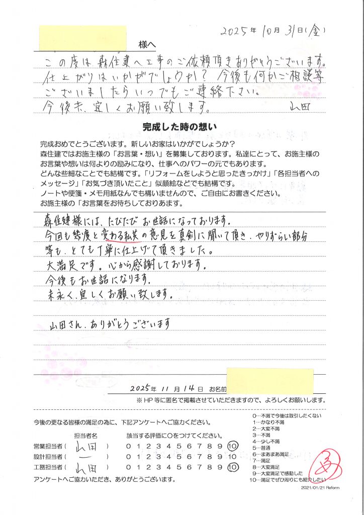 今回も幾度と変わる私共の意見を真剣に聞いて頂き、やりずらい部分等も、とても丁寧に仕上げて頂きました。