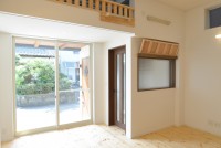 キッチン前にカウンターを設置して、ダイニングテーブルを置かなくても食事が出来るようにして、リビングスペースを広くとれるようにしました。