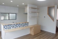間取りの提案ではご両親様と若夫婦様ご家族が気を使わなくても良いように玄関スペースに土間を計画し、ご両親のお友達も気軽に来訪できるような提案をいたしました。また、お子様3人の子育てと家事に忙しい奥様のことを考え、家事動線を良くして畳コーナーではお子様が遊べるようにしてあります。LDK東面には大きなデッキをつくり、週末にバーベキューなどが楽しめるようにしてあります。