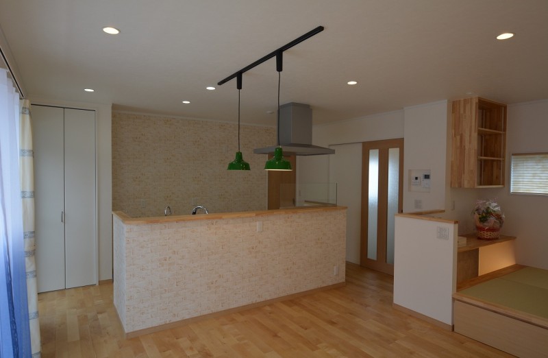 してあります。また、畳コーナーの一部にはカウンターを造り、パソコンや書き物が出来るような場所も造ってあります。