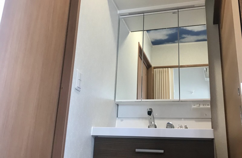洗面脱衣室が狭く、床下で水漏れがしている。脱衣室と洗面室を別々の空間に分けたい。